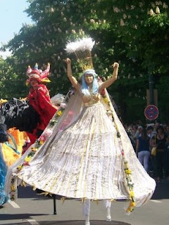 The Cultural Carnival (Karneval der Kulturen) took place in Berlin this weekend, and I went for a bit in the afternoon with Kristina and her roommate, Gabriel. One of the highlights of the carnival is the parade, in which cultural groups or clubs perform, or display themselves in some way. It was really sunny, and so we didn't stay for the whole thing, but what we saw was very entertaining. Brazilian groups dominated the part of the parade that we saw, so there was a lot of energetic samba and capoeira going on. Here are some pictures and videos of the festival:
